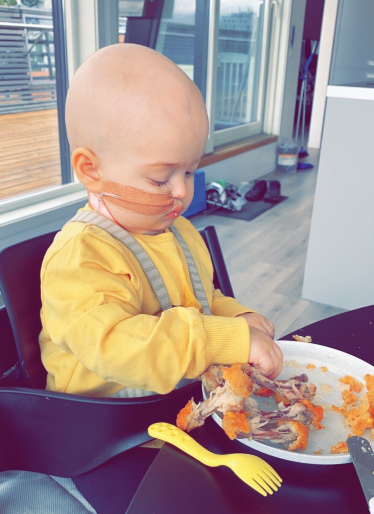 Den første uken gikk det veldig fint. Selve inngrepet gikk veldig bra og uten noen komplikasjoner. Sophia hadde ingen reaksjoner når de startet med sondemat og medisiner, og sårstellet gikk fint.