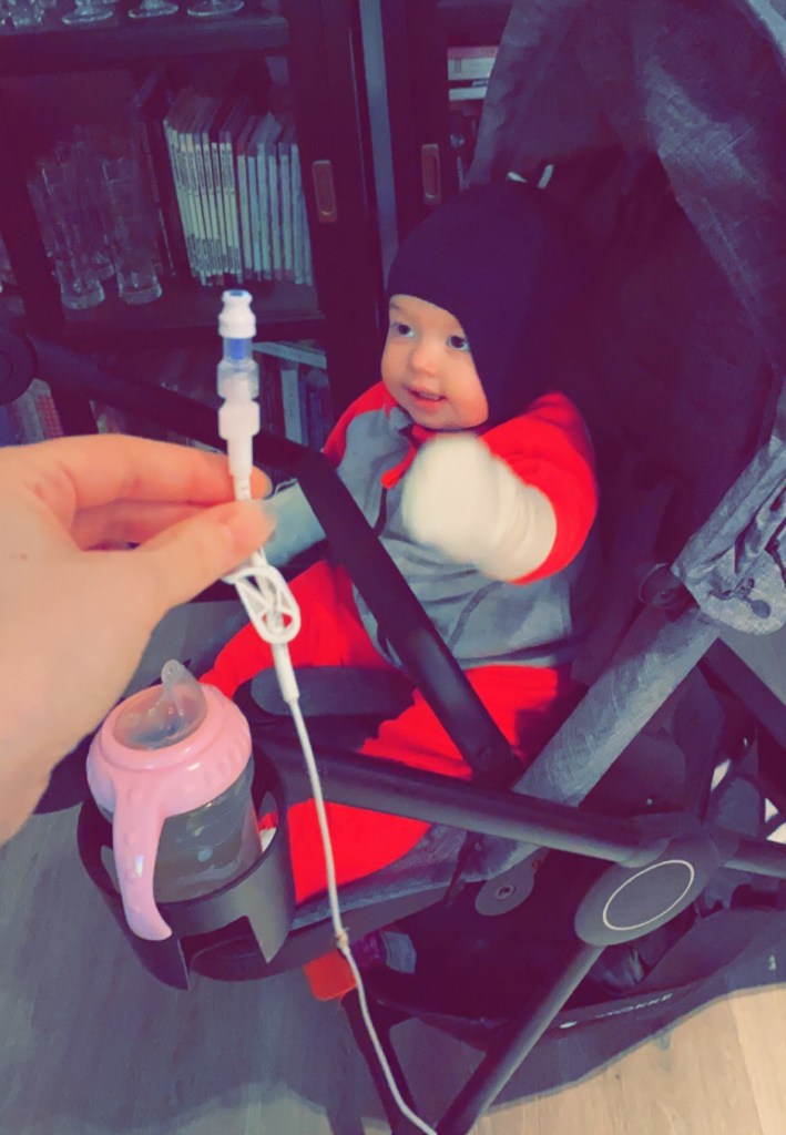 Det har gått 1,5 uker siden Sophia fikk sonde gjennom magen. Som vi nevnte i forrige innlegg, må såret gro i ca 6 uker, før hun kan få selve knappen. For øyeblikket er det nå en slange på rundt 20 cm som stikker ut. Det er med andre ord, mye slanger å holde styr på nå.