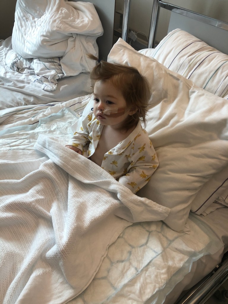 Noen poser med medisiner og sondeernæring senere, satt vi i bilen på vei hjem, for første gang på nesten én måned (for Sophia).
